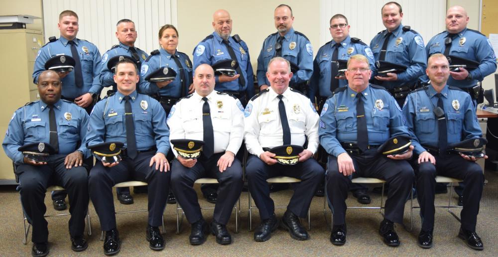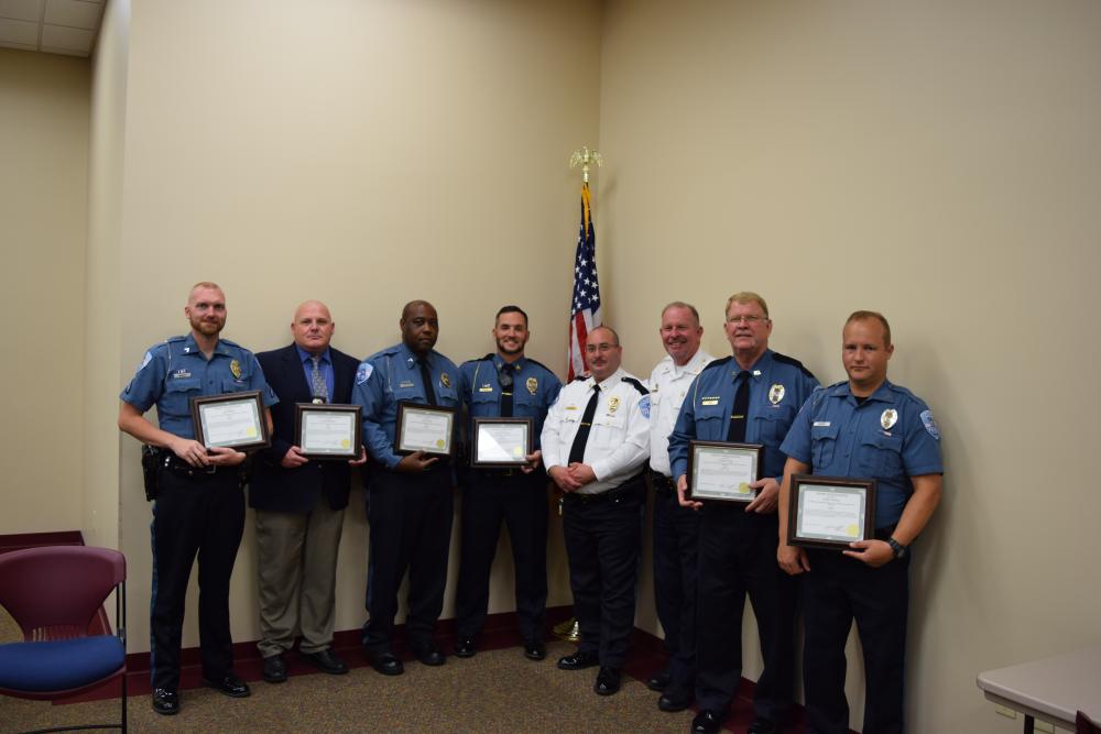 Officers standing together holding certificates