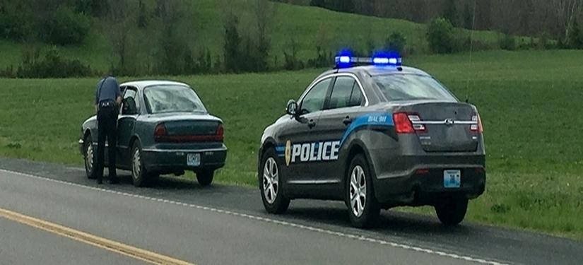 Police car stopping drivers