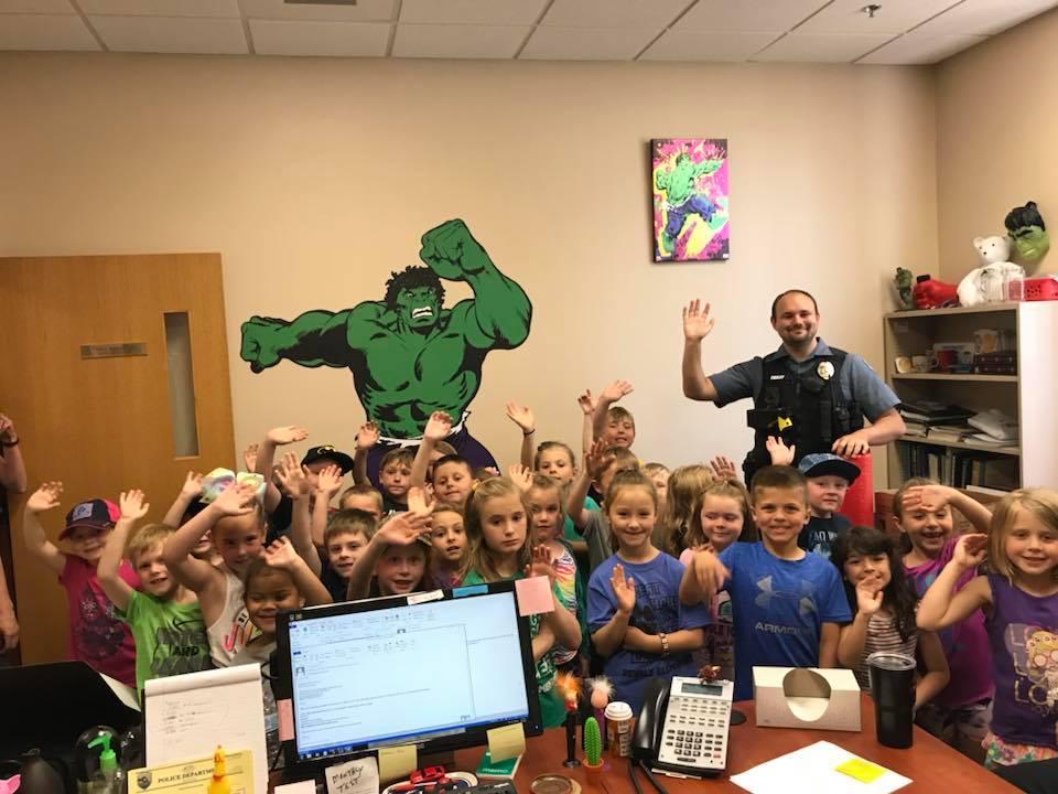 Class of children with police officer